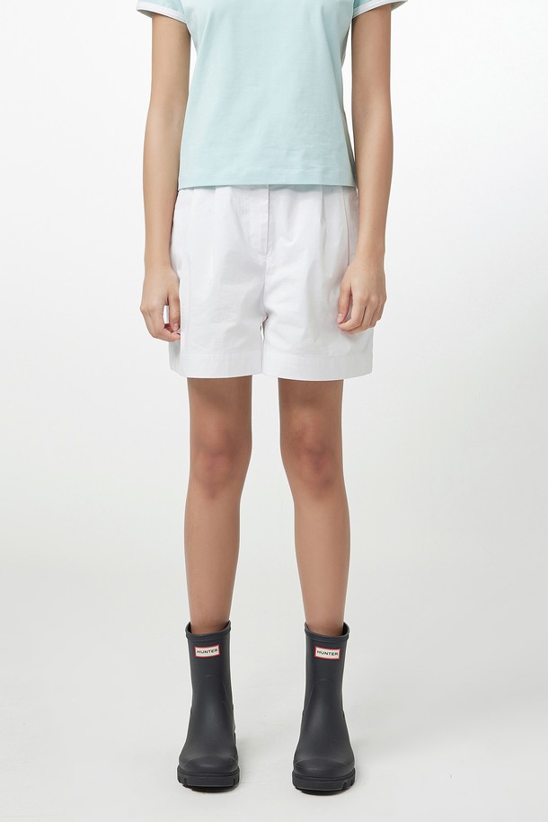 [WOMEN] 코튼 혼방 투턱 쇼츠 - 화이트 HEW0004APZWHT