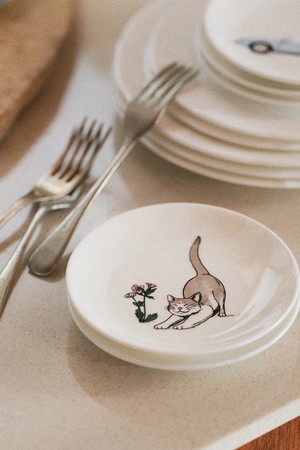 [한국도자기X티보에렘] 34. 5인치 접시 12.6CM 1P (Stretching cat)
