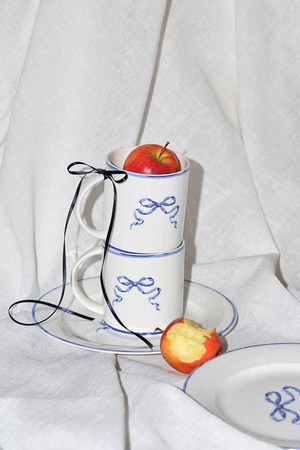 리본블루 머그&접시 1인 세트 2P (베이직)