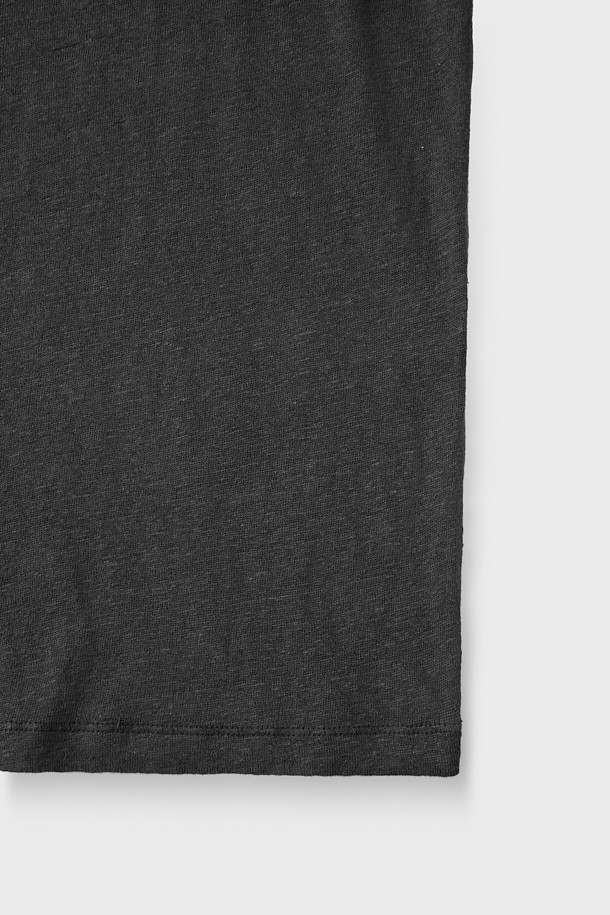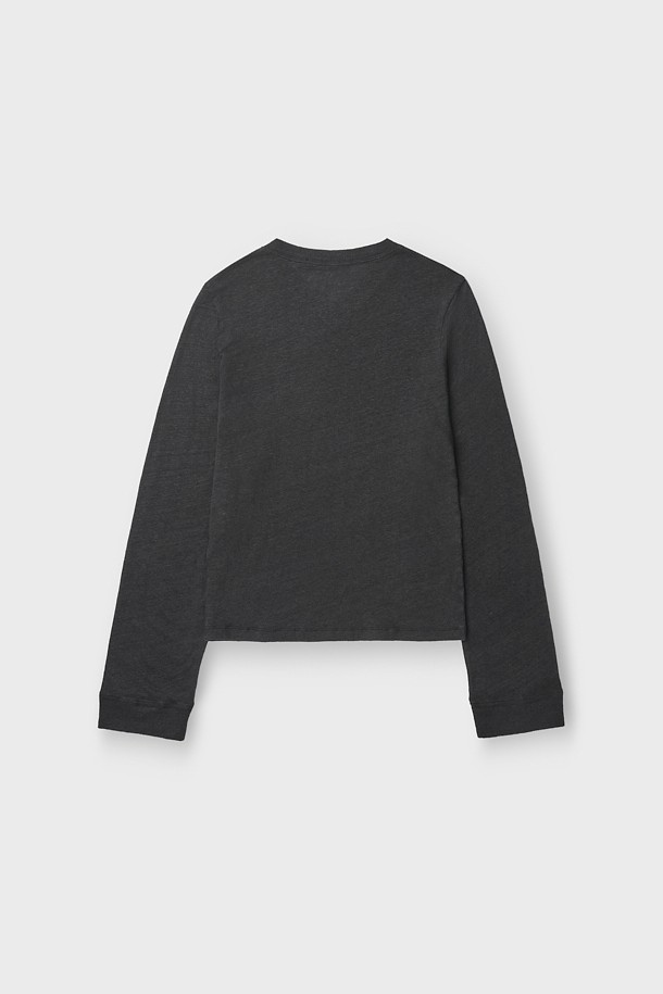 SELHY 리넨 브이넥 롱슬리브 티셔츠