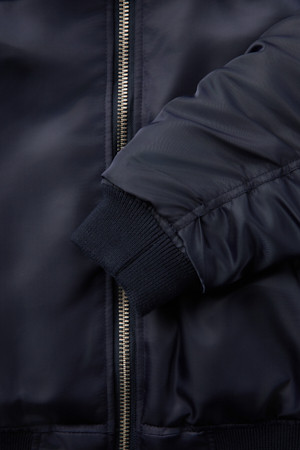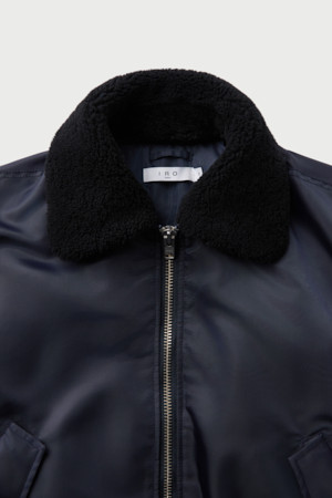 JOLINE 퍼 카라 사틴 봄버 자켓