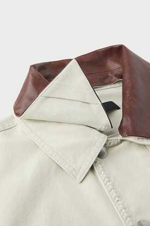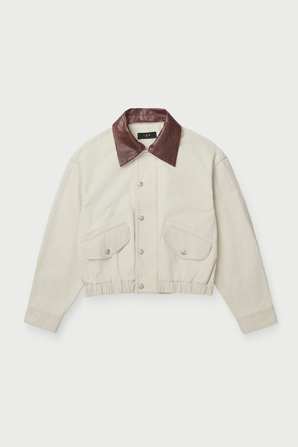 ELEFIE 레더 칼라 워크 블루종