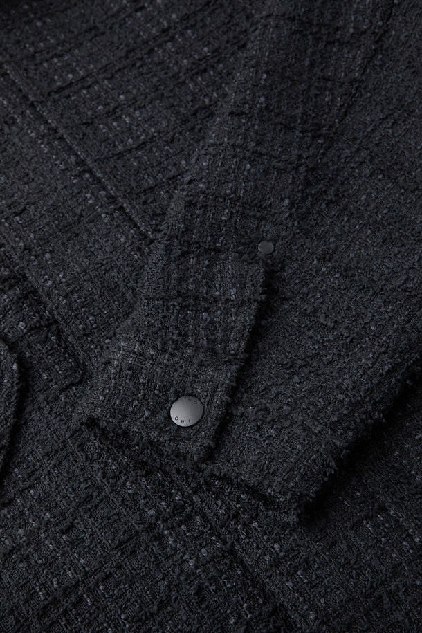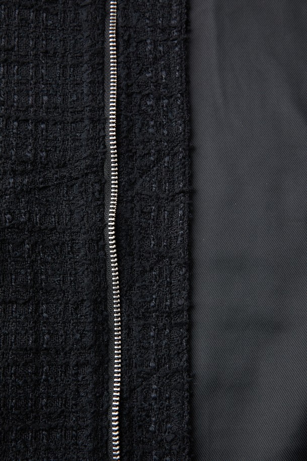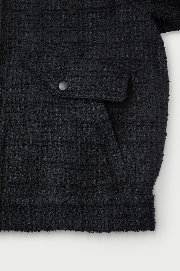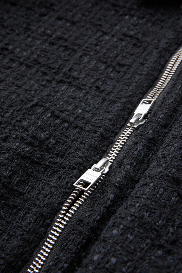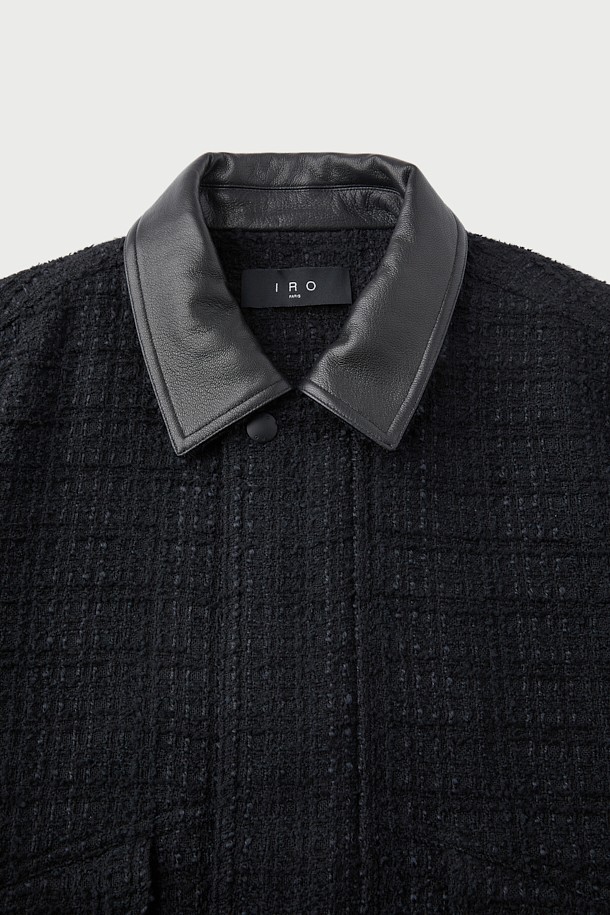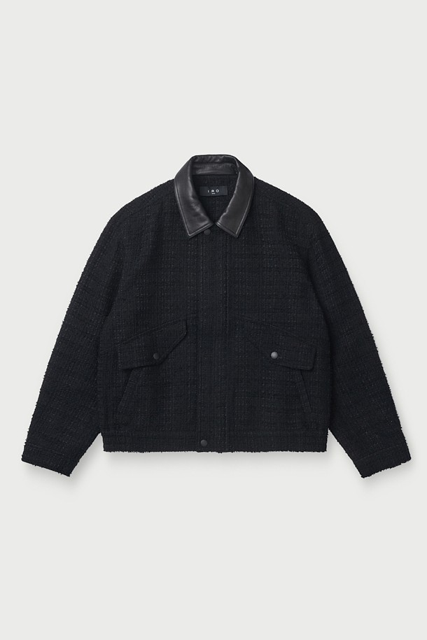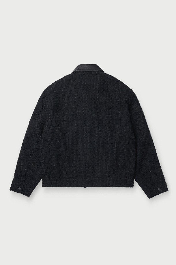 EONANE 레더 카라 니트 텍스처드 블루종