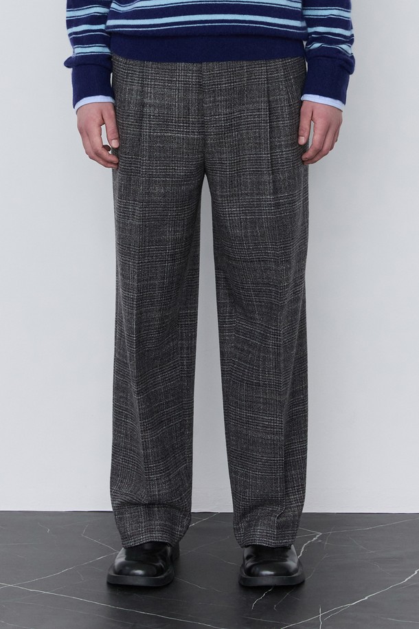 그레이 체크 투턱 와이드 셋업 팬츠 (JNPA5C282G2)