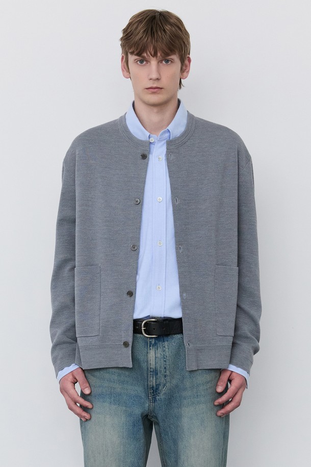 그레이 울 혼방 크루넥 가디건 (JNSW5C103G2)