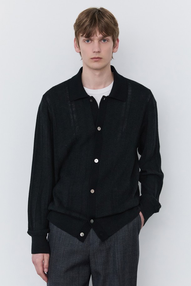 블랙 헤링본 카라넥 가디건 (JNSW5C107BK)