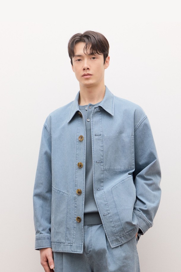 쿨코튼 가먼트 워싱 워크 셋업 자켓 - 블루 (JNJU6A207B2)
