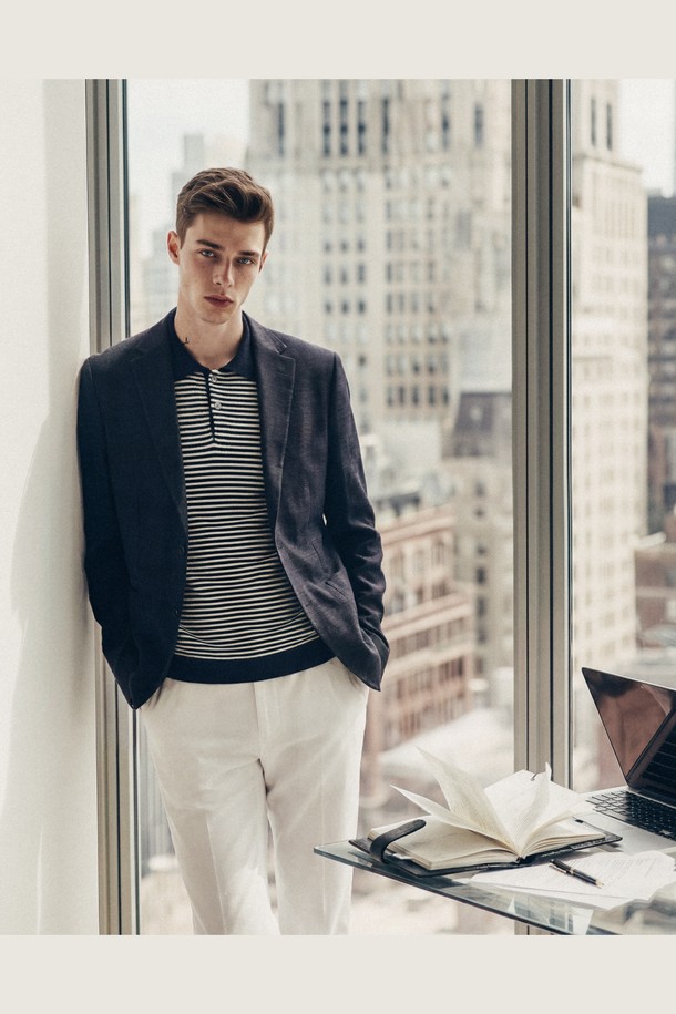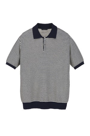 린넨 블렌드 스트라이프 카라 니트 - 다크네이비 (JNSW6B410N3)