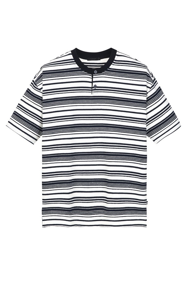 헨리넥 스트라이프 티셔츠 - 화이트 (JNTS6B402WT)