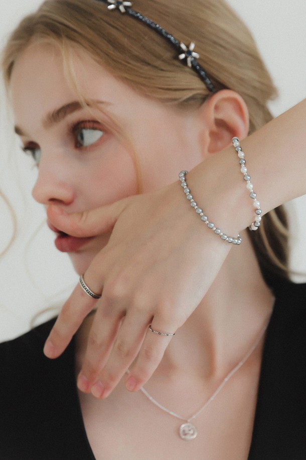 실버볼 그레이 진주 팔찌 B01009