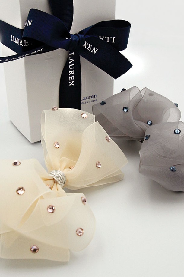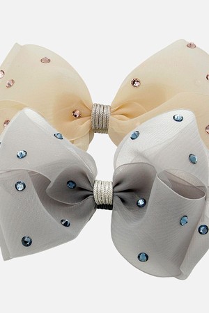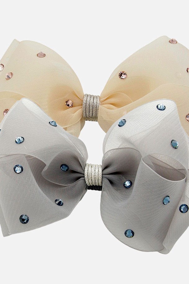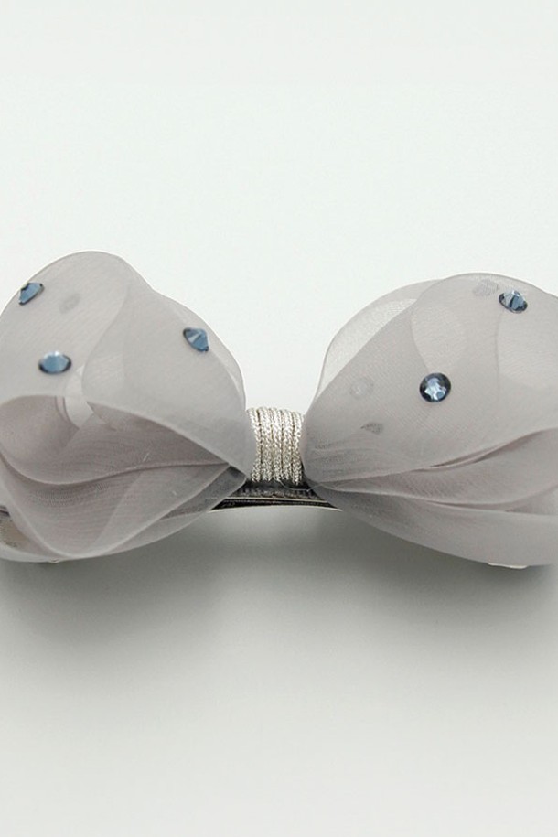 쉬폰 큐빅 도트 리본 자동핀 H01449