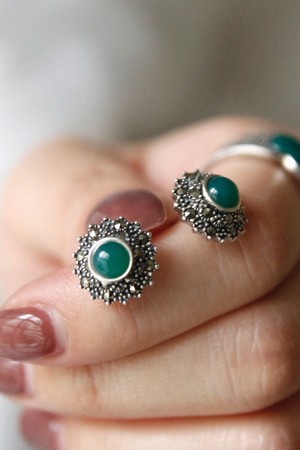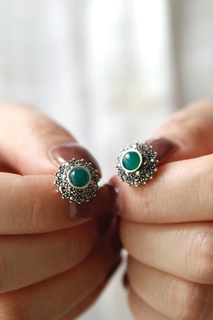 그린오닉스 마카사이트 실버 귀걸이 Be0702