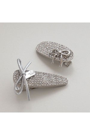 블링 큐빅 실버 리본 집게핀 H01464