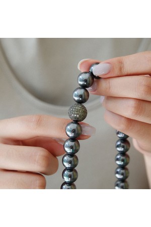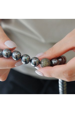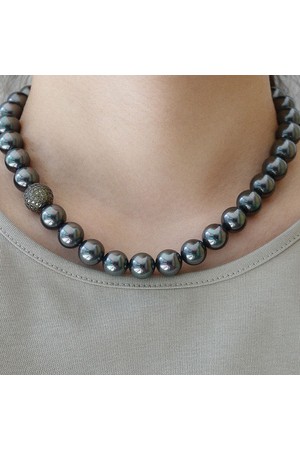 파베 큐빅볼 12mm 흑진주 목걸이 Bn0588