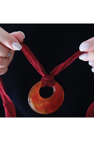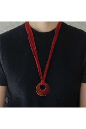 레드 자마노 원석 실크 코드 목걸이 Bn0591