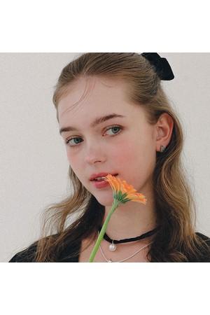 프랑스 벨벳 리본 큐빅 자동핀 H01487