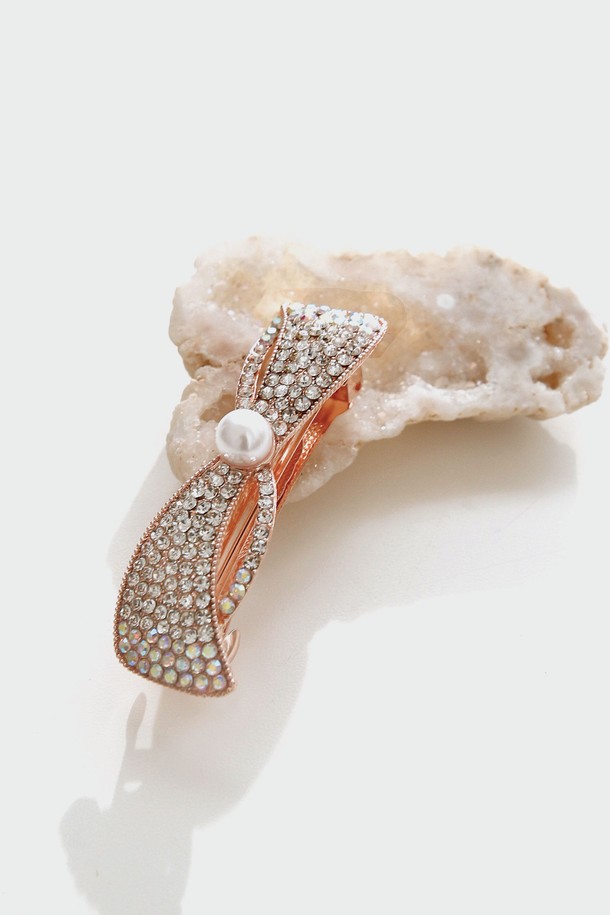 로즈골드 리본 진주 자동핀 H01521
