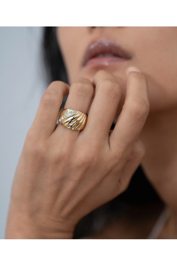 멜로디 라인 링 14k gold plated