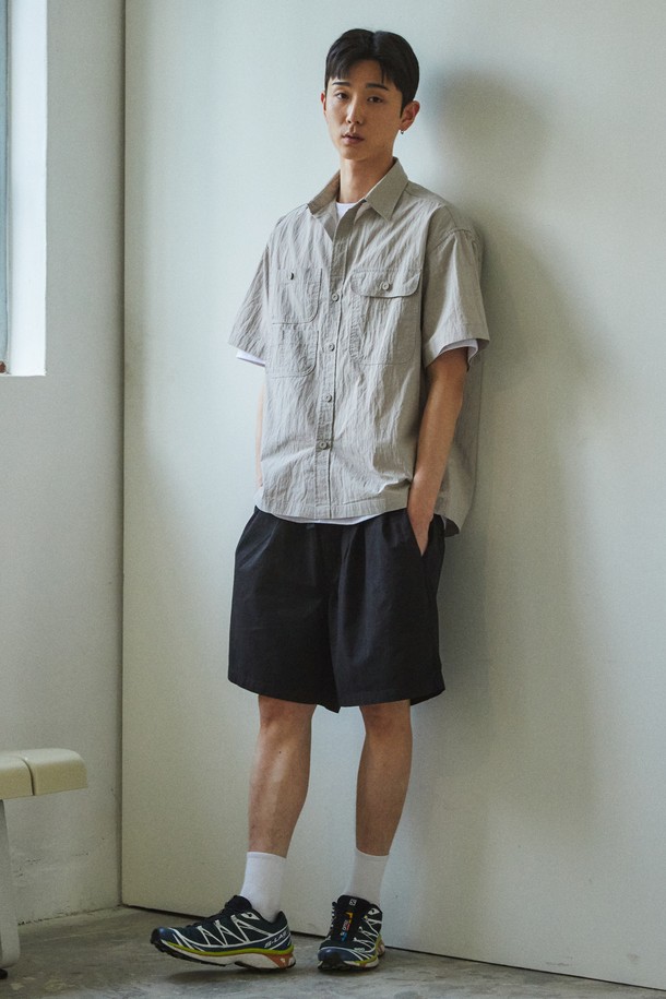 [KAPPY DESIGN] TWO TUCK WIDE HALF PANTS (BLACK)