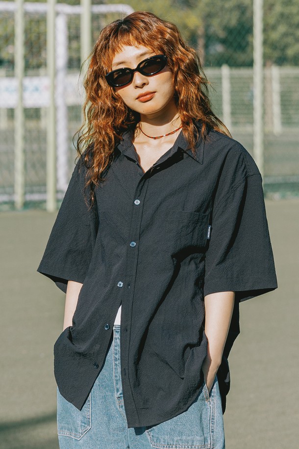 [KAPPY DESIGN] SEERSUCKER CHECK HALF SHIRT (NAVY)