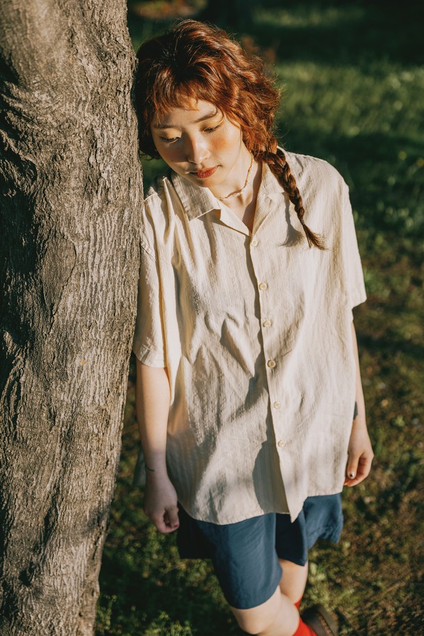[KAPPY DESIGN] JACQUARD OPEN COLLAR SHIRT (LIGHT BEIGE)