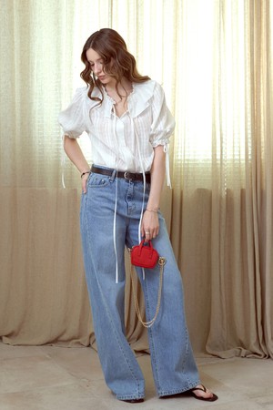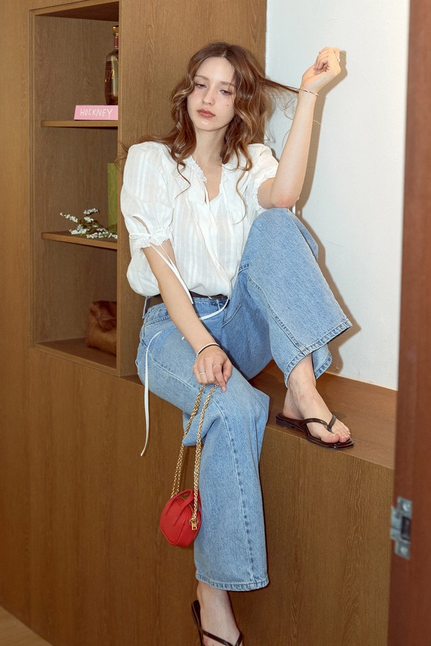 자가드 프릴 카라블라우스_WHITE