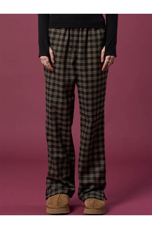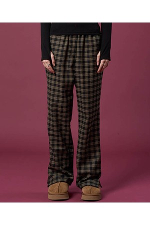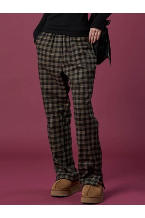 기모 도톰 체크 와이드슬랙스 밴딩 팬츠 [BLACK] 가을 겨울 ver.