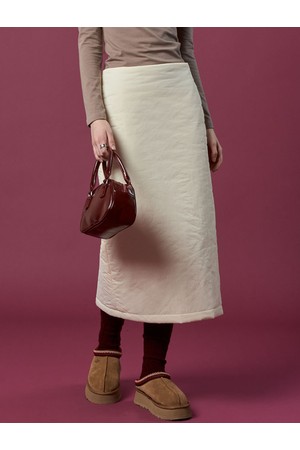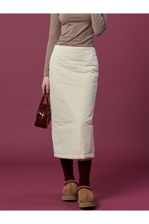 패딩 방한 보온 도톰 누빔 무지 롱스커트 [아이보리]