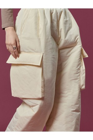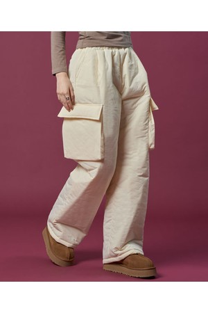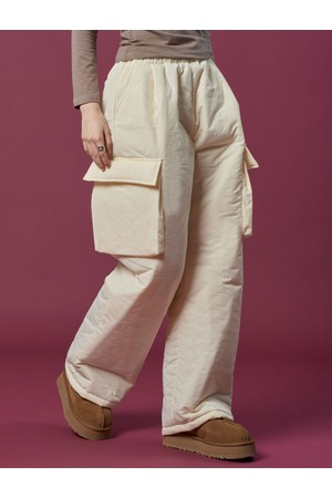 패딩 방한 보온 도톰 누빔 입체카고 슬랙스 팬츠 [아이보리] 겨울바지 ver.