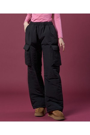 패딩 방한 보온 도톰 누빔 입체카고 슬랙스 팬츠 [블랙] 겨울바지 ver.