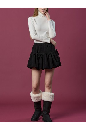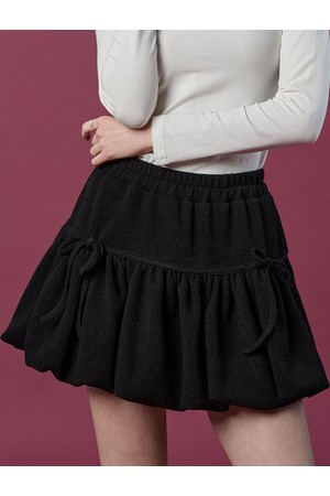 방한 니트 벌룬 리본 플레어 밴딩 미니스커트 [BLACK] 치마바지 ver.