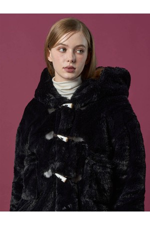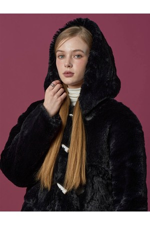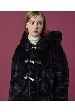[밍크 ver.] 후드 오버핏 떡볶이 더플 누빔 무스탕 자켓 [Black] 비건 퍼 ver.