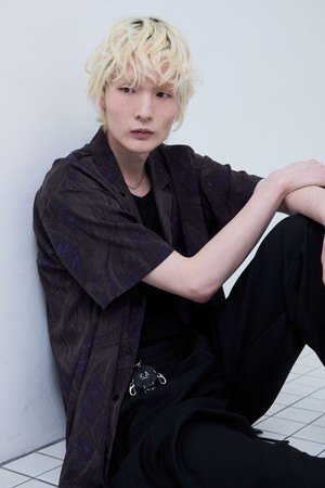 플레임 블러 오픈카라 셔츠_다크퍼플