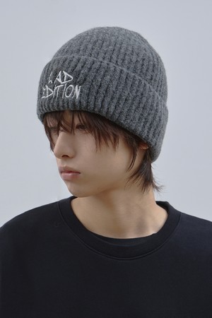 로고 니트 비니_다크그레이(아이보리 컬러 폰트)