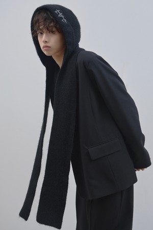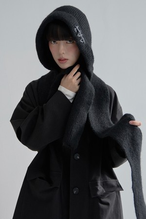 LAD 울 니트 후드 머플러_블랙