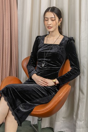 Square neck velvet dress_BLACK