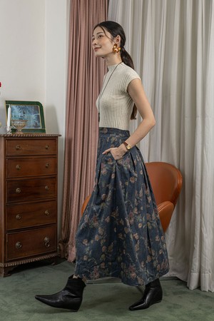 Midnight flower skirt_NAVY