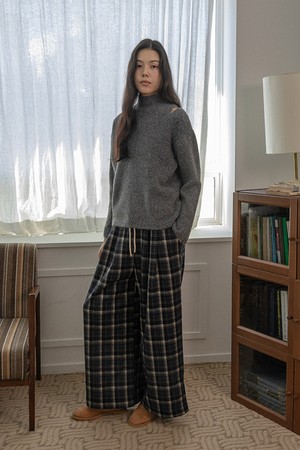 Plaid straight-leg drawstring pants_2color