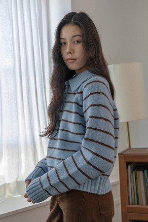 Lapel striped knit top_BLUE
