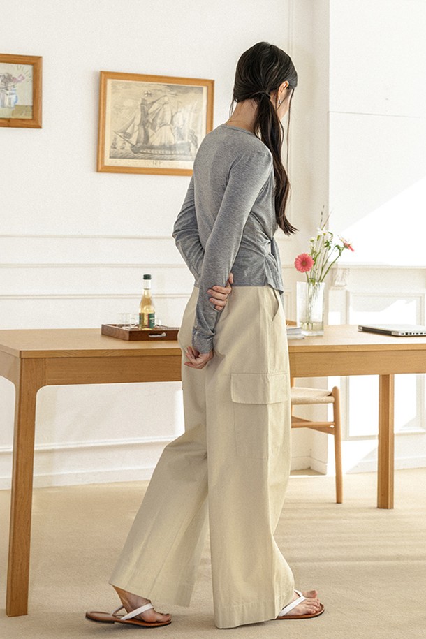 Wide cargo cotton pants_BEIGE