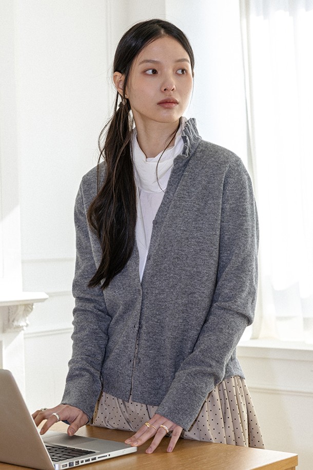Frill collar button knit cardigan_2color