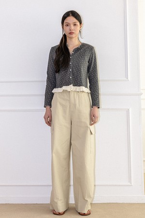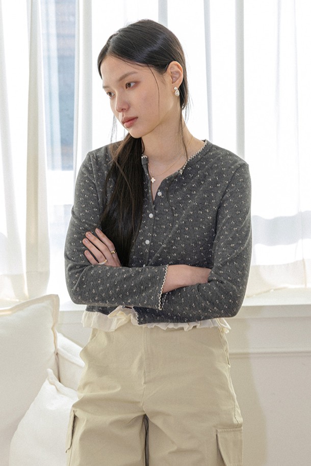 Dot frill hem layered cardigan_CHARCOAL