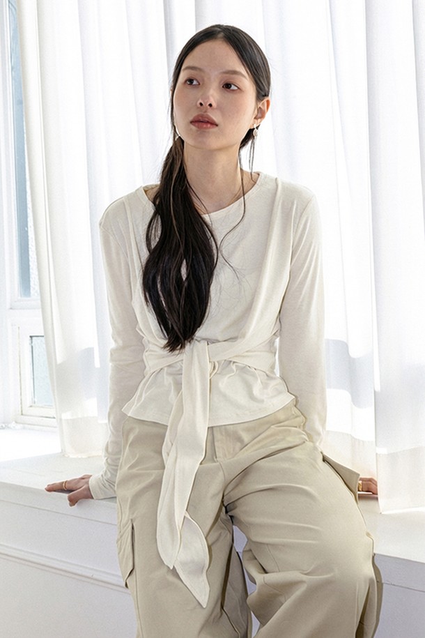 Tie waist fitted top_3color