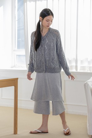 Soft cable knit cardigan_GRAY
