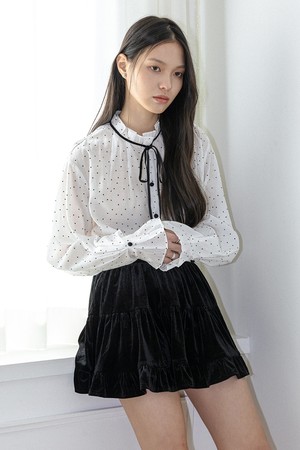 Velvet ribbon dot blouse_2color