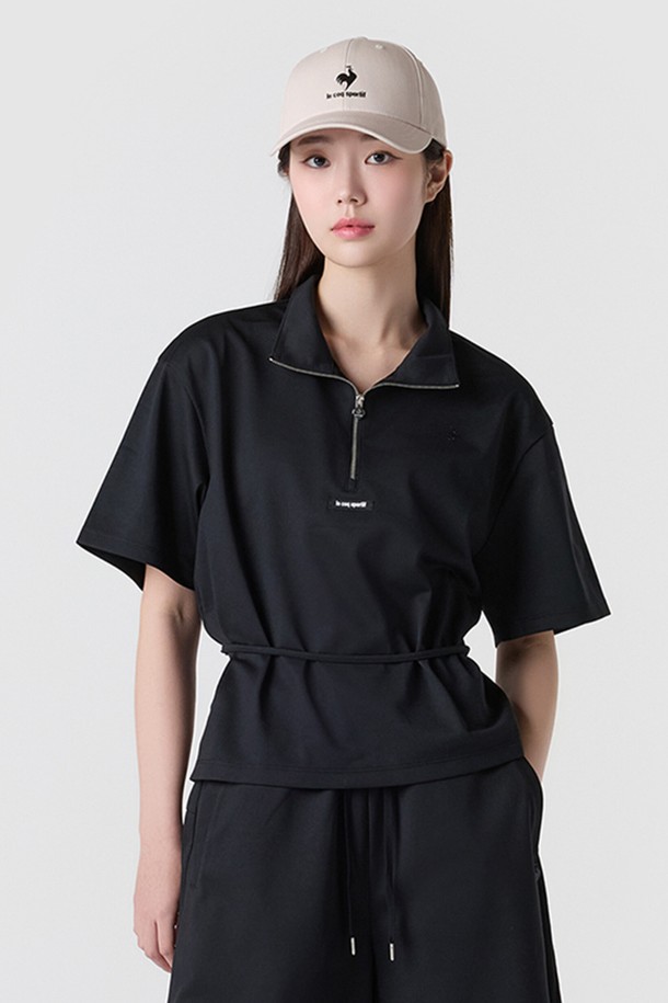 여성 선데이 자가드 루즈핏 반팔 아노락 - 블랙(QQ222OJK45)
