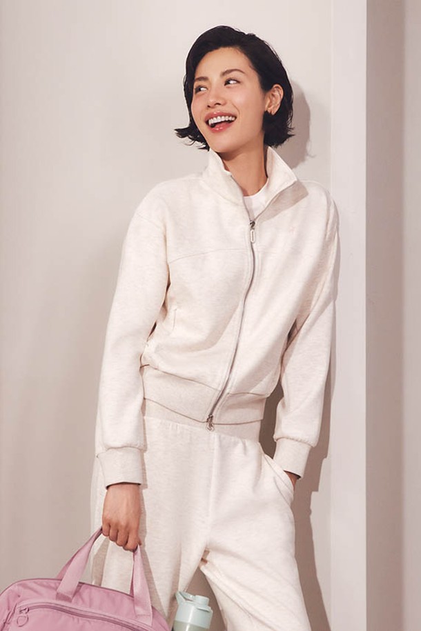 여성 모달 더블텐션 루즈핏 하이넥 집업 - 오트밀(QQ322OFT81)