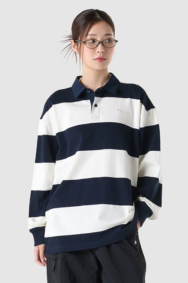 온라인전용) 유니 루즈 스트라이프 긴팔 티셔츠 - 네이비(QQ323JRL81)
