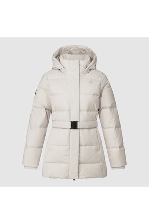 여성 레귤러핏 중기장 구스 다운 자켓 - 베이지 QQ422ODJN1