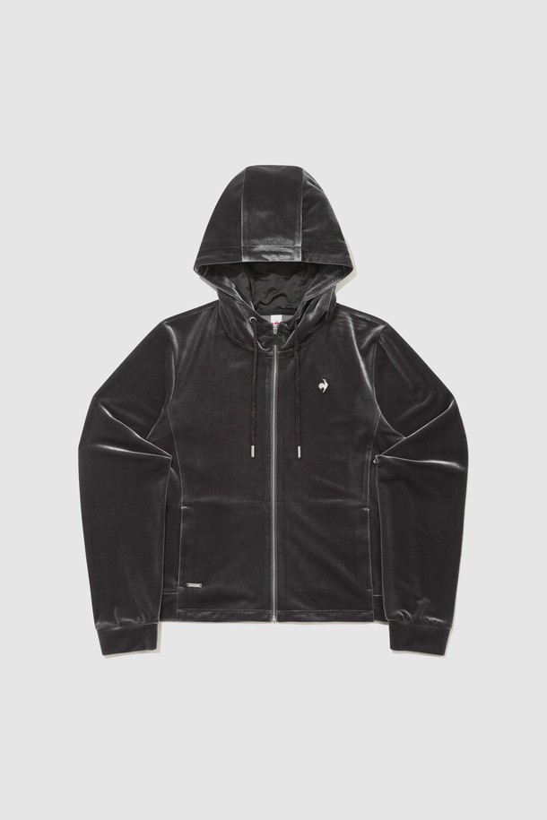 여성 얼리스프링 슬림핏 벨벳 후드 집업 - 그레이 QR122OFT15